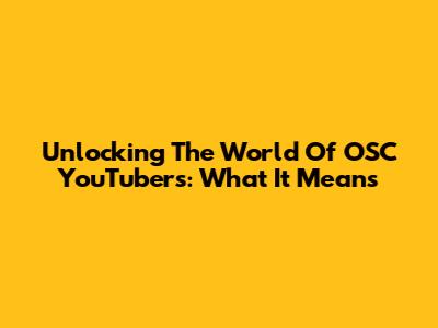 Unlocking The World Of OSC YouTubers: What It Means