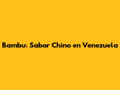 Bambu: Sabor Chino En Venezuela
