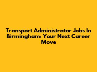 Transport Administrator Jobs In Birmingham: Your Next Career Move