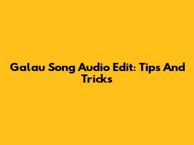 Galau Song Audio Edit: Tips And Tricks