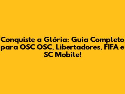 Conquiste A Glória: Guia Completo Para OSC OSC, Libertadores, FIFA E SC Mobile!