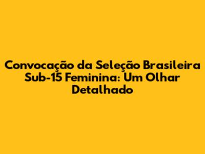 Chegou a hora de conhecer as jogadoras que foram chamadas para defender a camisa da Seleção Brasileira Sub-15 Feminina! A lista de convocadas é sempre um assunto muito comentado e gera expectativas e debates entre os torcedores e especialistas. Vamos analisar cada posição, destacar os nomes que prometem brilhar e entender um pouco mais sobre o estilo de jogo da equipe.