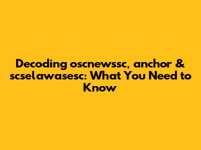 Decoding Oscnewssc, Anchor & Scselawasesc: What You Need To Know