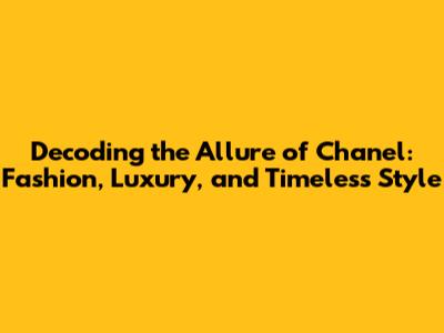 Decoding The Allure Of Chanel: Fashion, Luxury, And Timeless Style