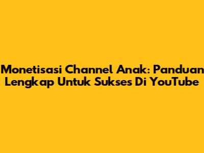 Monetisasi Channel Anak: Panduan Lengkap Untuk Sukses Di YouTube