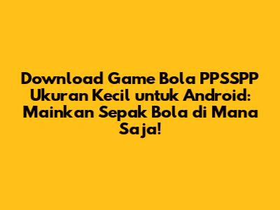 Kita bakal bahas lebih dalam lagi soal gimana caranya dapetin game-game ini, apa aja game bola PPSSPP ukuran kecil yang recommended, sampai tips biar pengalaman main kamu makin asik. Siap-siap ya, karena artikel ini bakal jadi panduan lengkap kamu buat download game sepak bola PPSSPP ukuran kecil untuk Android!