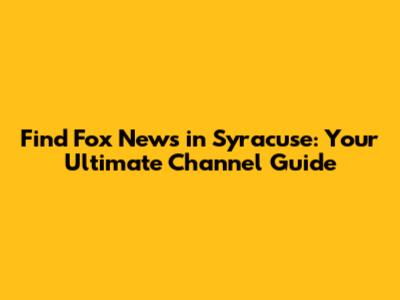 Hey there, Syracuse residents! Are you scouring your TV guide, wondering what channel is Fox News in Syracuse? You're not alone, guys! With so many options out there – from traditional cable to satellite and a whole universe of streaming services – it can feel like a real treasure hunt just to find your preferred news source. But don't sweat it, because we're here to cut through the clutter and give you the definitive guide to catching Fox News in Syracuse, no matter how you watch TV. Whether you're a long-time cable subscriber, thinking about making the jump to satellite, or fully embracing the cord-cutting revolution, we’ve got all the essential info you need. We'll explore every avenue, ensuring you can tune into Fox News whenever you want to stay informed about national and international headlines, political commentary, and breaking stories. Get ready to navigate the TV landscape like a pro and finally pinpoint Fox News on your screen, right here in Central New York.