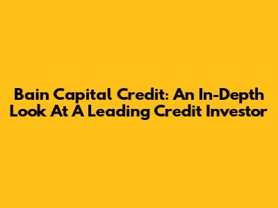 Bain Capital Credit: An In-Depth Look At A Leading Credit Investor