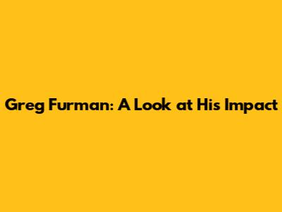 Greg Furman: A Look At His Impact