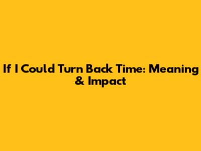 If I Could Turn Back Time: Meaning & Impact