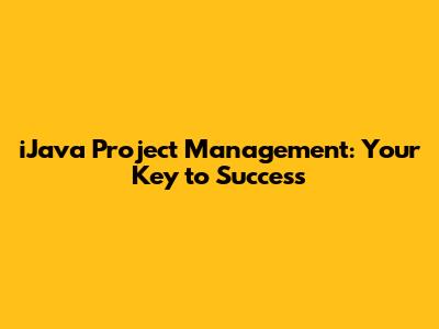IJava Project Management: Your Key To Success
