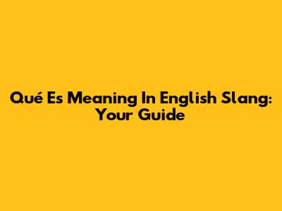 'Qué Es' Meaning In English Slang: Your Guide