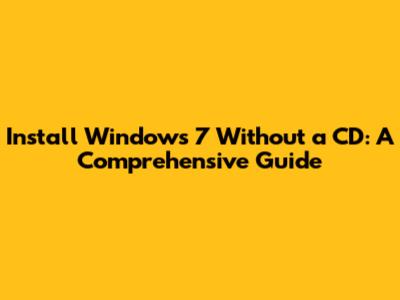 Install Windows 7 Without A CD: A Comprehensive Guide