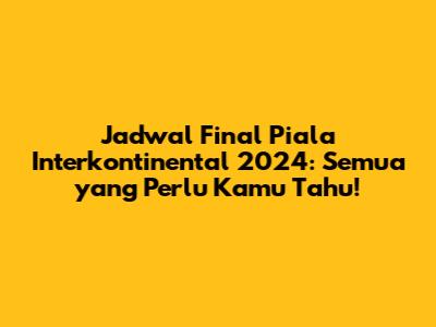 Guys, kalau kamu adalah penggemar berat sepak bola dan selalu mengikuti perkembangan terbaru, pasti sudah tidak sabar menantikan Piala Interkontinental 2024! Kompetisi yang mempertemukan klub-klub terbaik dari berbagai konfederasi ini selalu menyajikan pertandingan yang seru dan penuh kejutan. Nah, kali ini kita akan membahas secara lengkap tentang jadwal final Piala Interkontinental 2024. Kita akan bedah kapan pertandingan final akan digelar, di mana lokasinya, dan informasi penting lainnya yang wajib kamu ketahui. Jadi, siapkan diri kamu untuk mendapatkan informasi terlengkap dan ter-update seputar ajang bergengsi ini!