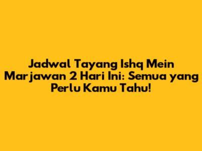 Ishq Mein Marjawan 2 telah memikat hati penonton di seluruh dunia dengan alur cerita yang menegangkan, karakter yang kompleks, dan visual yang memukau. Sebagai penggemar setia, mengetahui jadwal tayang adalah kunci untuk tetap terhubung dengan cerita dan tidak melewatkan momen penting. Mari kita selami lebih dalam panduan lengkap tentang jadwal tayang Ishq Mein Marjawan 2, termasuk platform streaming, tips menonton, dan bahkan sedikit bocoran tentang apa yang akan terjadi selanjutnya.