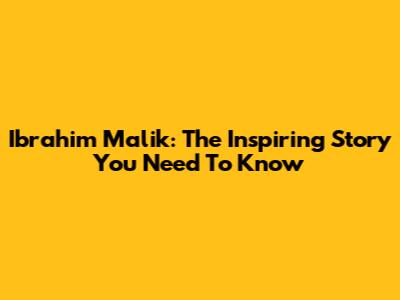 Ibrahim Malik: The Inspiring Story You Need To Know