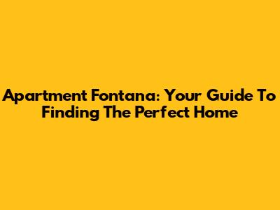 Apartment Fontana: Your Guide To Finding The Perfect Home