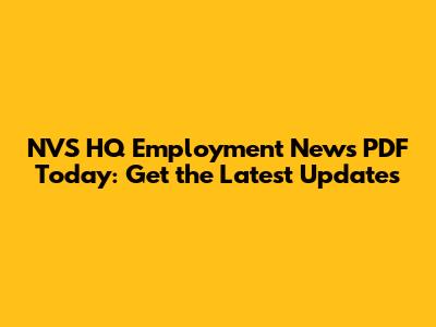 Why Staying Updated with NVS HQ Employment News is Important