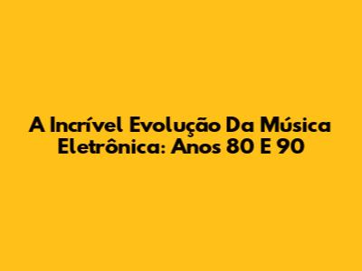 A Incrível Evolução Da Música Eletrônica: Anos 80 E 90