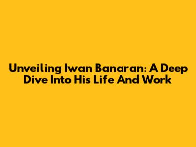 Unveiling Iwan Banaran: A Deep Dive Into His Life And Work