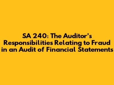 SA 240: The Auditor’s Responsibilities Relating To Fraud