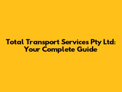 Total Transport Services Pty Ltd: Your Complete Guide