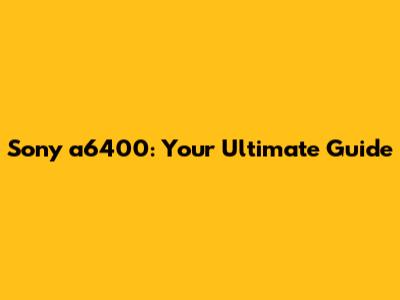 Sony A6400: Your Ultimate Guide