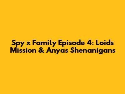 Hey guys! Get ready to dive back into the hilarious and heartwarming world of Spy x Family because we're breaking down Episode 4! This installment is a total banger, packed with more of Loid's elite spy work, Anya's uniquely adorable chaos, and Yor's surprisingly deadly grace. If you thought things were getting interesting before, buckle up, because this episode takes the Forger family's bizarre mission to a whole new level. We'll be chatting about Loid's clever strategies, Anya's laugh-out-loud moments, and how this trio is slowly, hilariously, becoming a real family. So, grab your favorite snack, get comfy, and let's get into the nitty-gritty of what makes Spy x Family so darn special, starting with this epic episode!