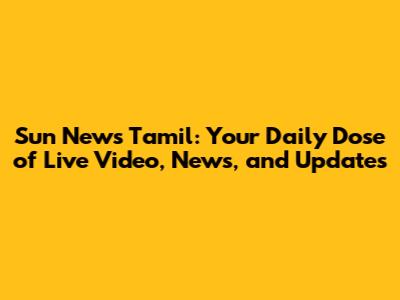 Hey everyone! Are you looking for the latest happenings in Tamil Nadu? Then, you're in the right place! We're diving deep into the world of Sun News Tamil, your go-to source for live video coverage, breaking news, and all the updates you need to stay informed. Let's explore everything you can expect from Sun News Tamil and how you can stay connected with the news that matters most to you. Buckle up, guys, because we're about to embark on a journey through the vibrant world of Tamil news!