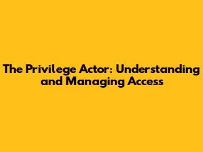 The Privilege Actor: Understanding And Managing Access