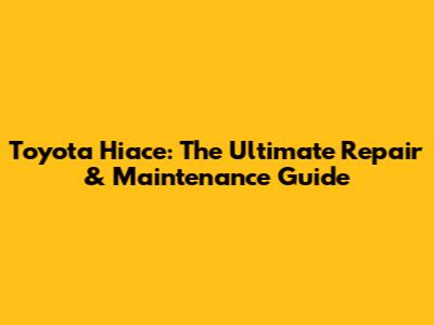 Toyota Hiace: Ultimate Repair & Maintenance Guide