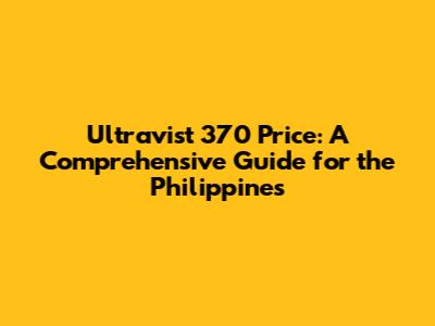 Ultravist 370 Price: A Comprehensive Guide For The Philippines