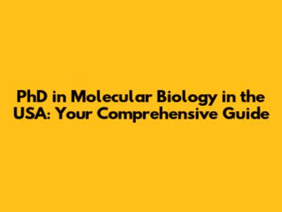 Why Choose a PhD in Molecular Biology in the USA?