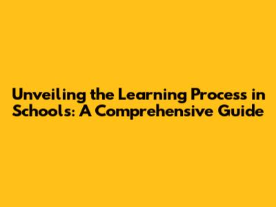 Unveiling The Learning Process In Schools