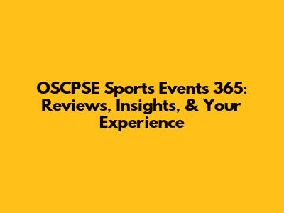 OSCPSE Sports Events 365: Reviews, Insights, & Your Experience