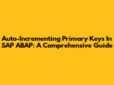 Auto-Incrementing Primary Keys In SAP ABAP: A Comprehensive Guide